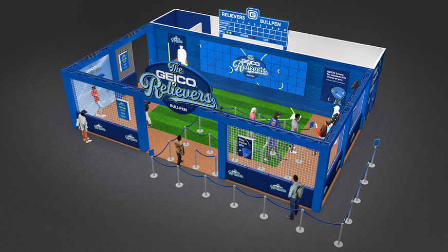 Within their role of MLB sponsor, GEICO had a prominent footprint at All Star Village 2025 where guests can step into the Relievers bullpen and play to protect the GEICO bull pen cart from home run balls on our large interactive screen while learning about auto insurance. Guests scan the QR code to register, head to the bases to play where they win a prize tiered by score and snap a pic at our photo moment on the way out of the footprint. The flexible open space was also the perfect spot for hosting meet and greets against our branded backdrop.